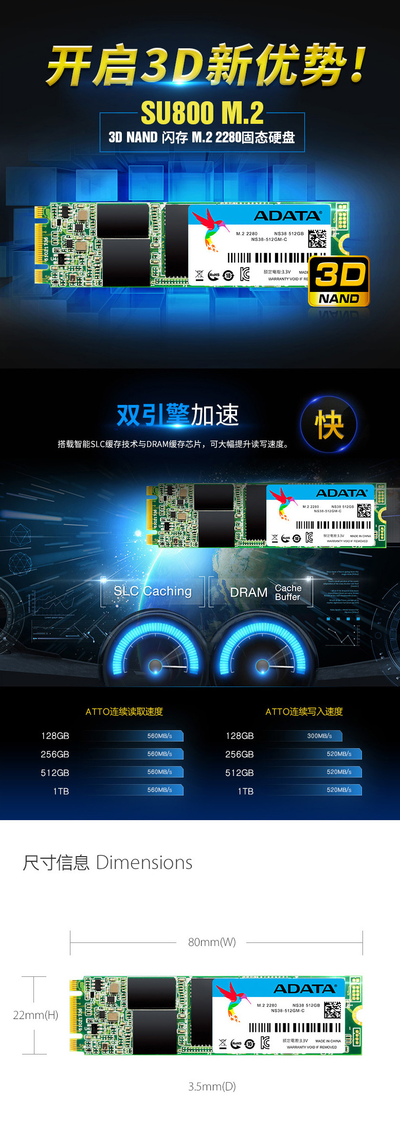 AData/威刚SSD SU800-128G固态硬盘M.2接口2280电脑硬盘 昆明电脑批发