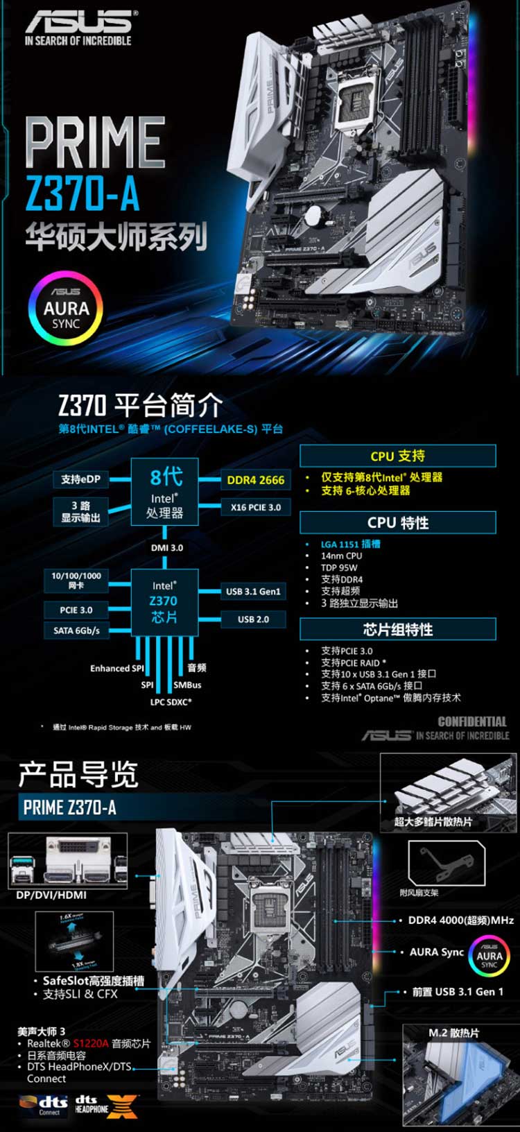 Asus/华硕 PRIME Z370-A台式机电脑游戏主板 支持8代CPU 1151针 昆明电脑批发