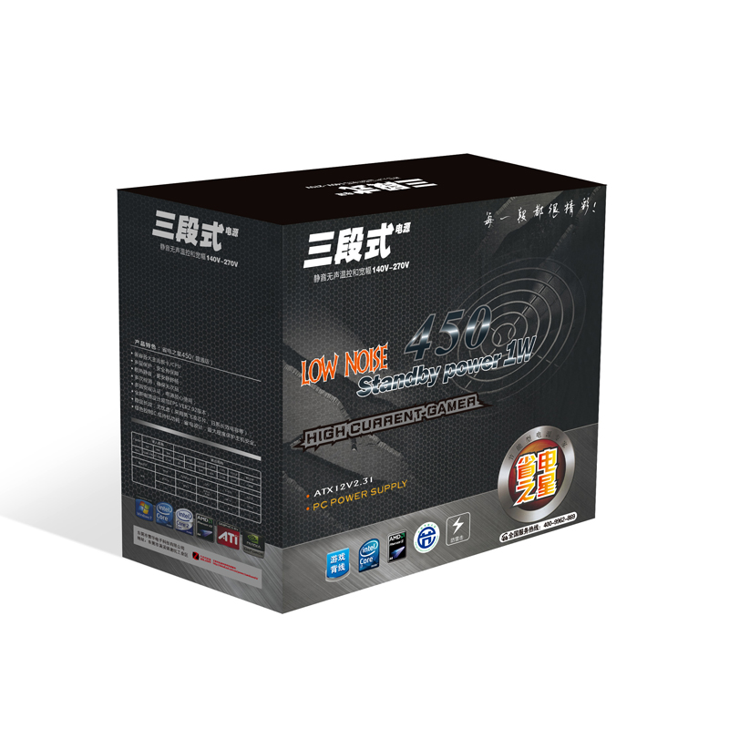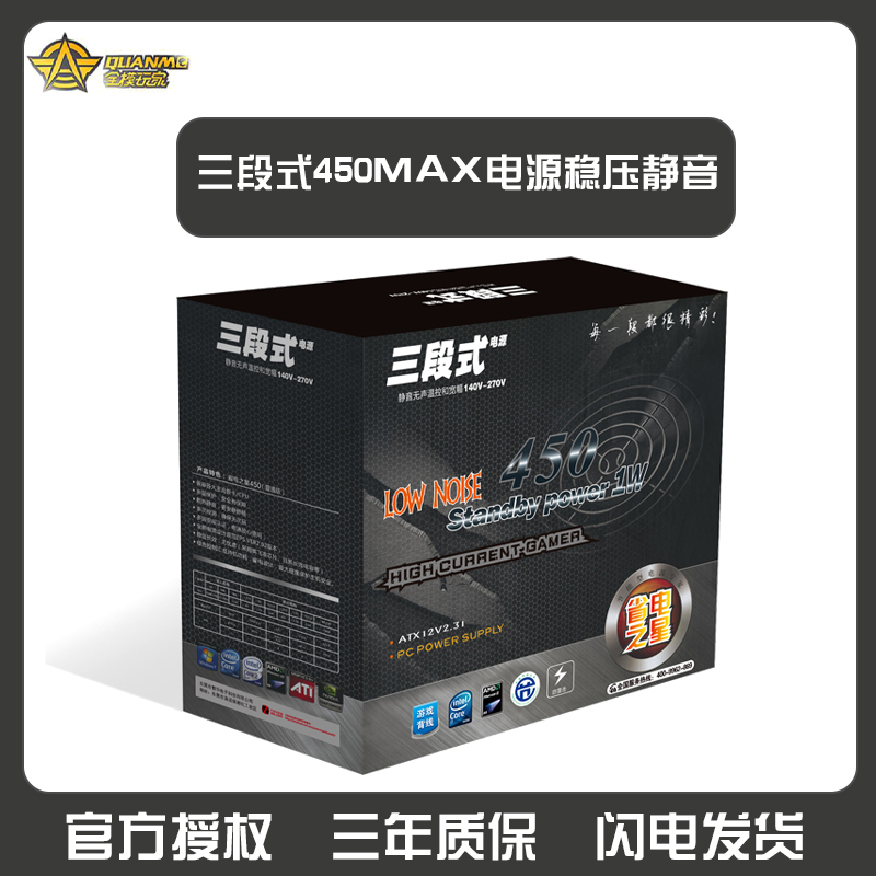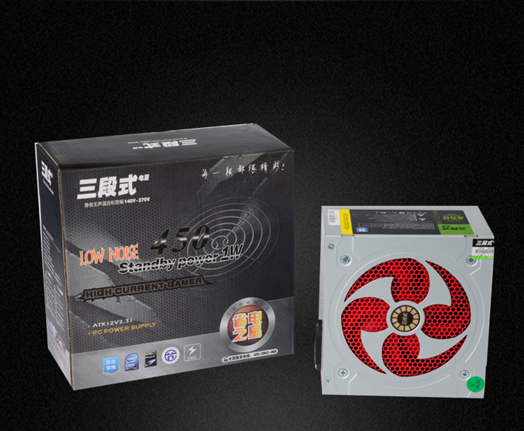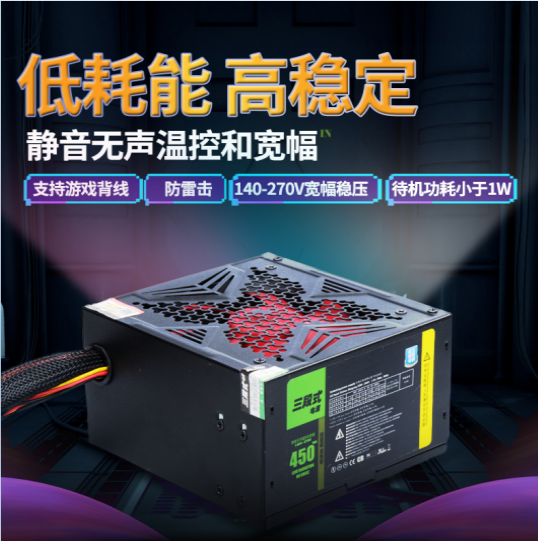 三段式电源450MAX额定250w稳定静音电脑主机电源节能稳定防过载走背线 昆明电脑商城