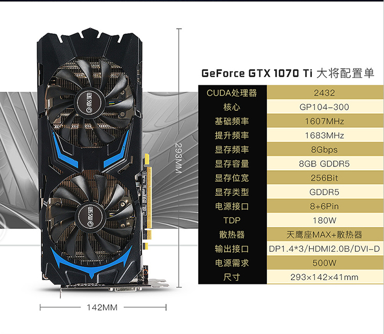 影驰 GTX1070Ti 8G大将台式机游戏独立吃鸡显卡台式机电脑显卡 云南显卡批发