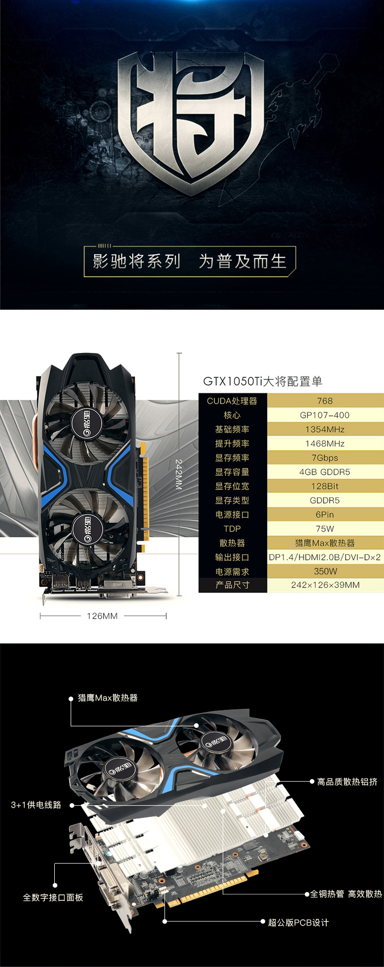 产品名称:GALAXY/影驰 GTX1050Ti 4...