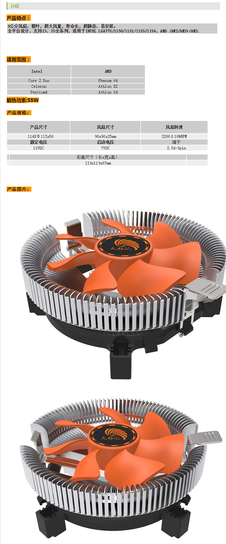 商品名称:天极风(TIANJIFENG) CPU风扇散热器 Q50