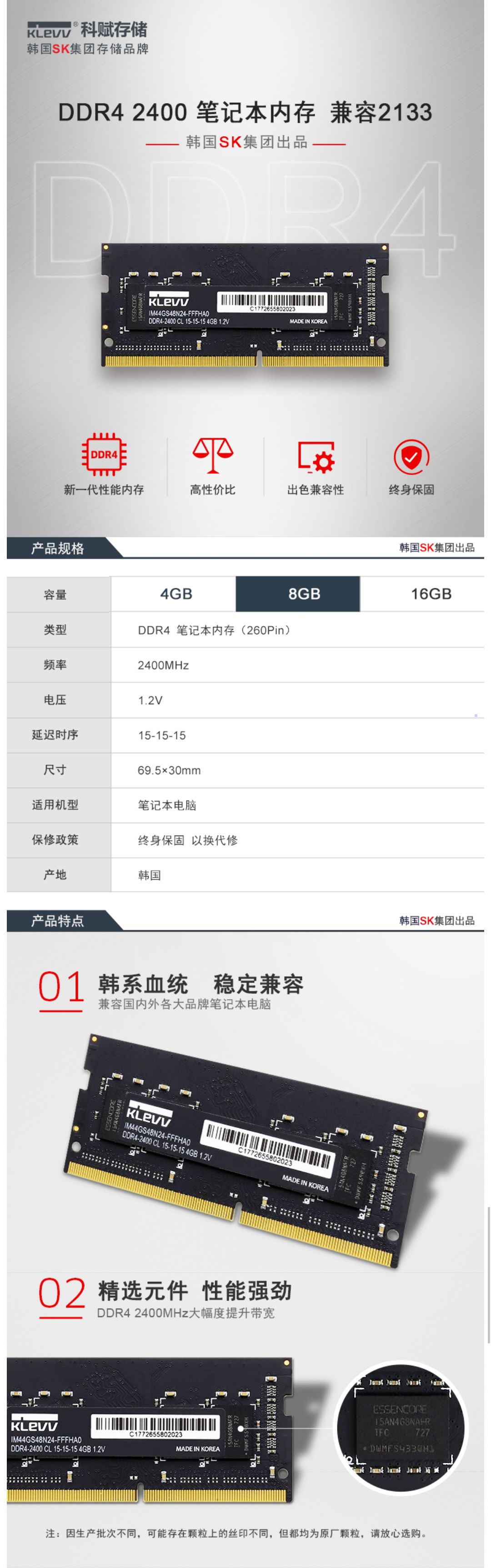 商品名称:科赋(KLEVV) DDR4内存条 笔记本 2400 8G