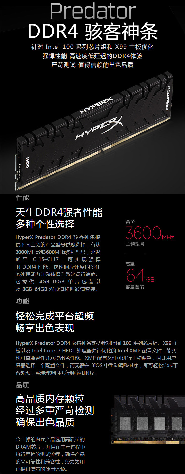 商品名称:金士顿(Kingston) 骇客神条 Predator系列 游戏主机台式机内存条 DDR4 3333 套条8G*2