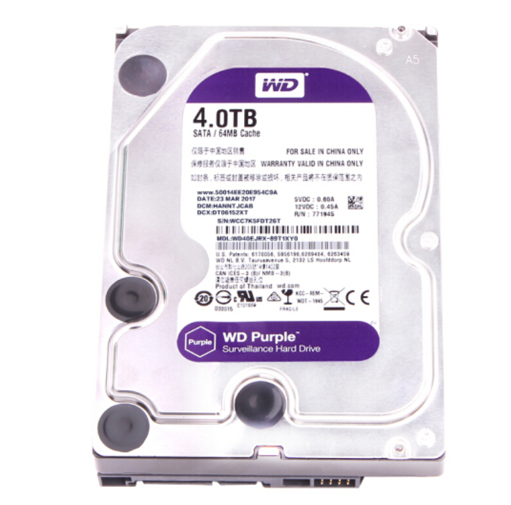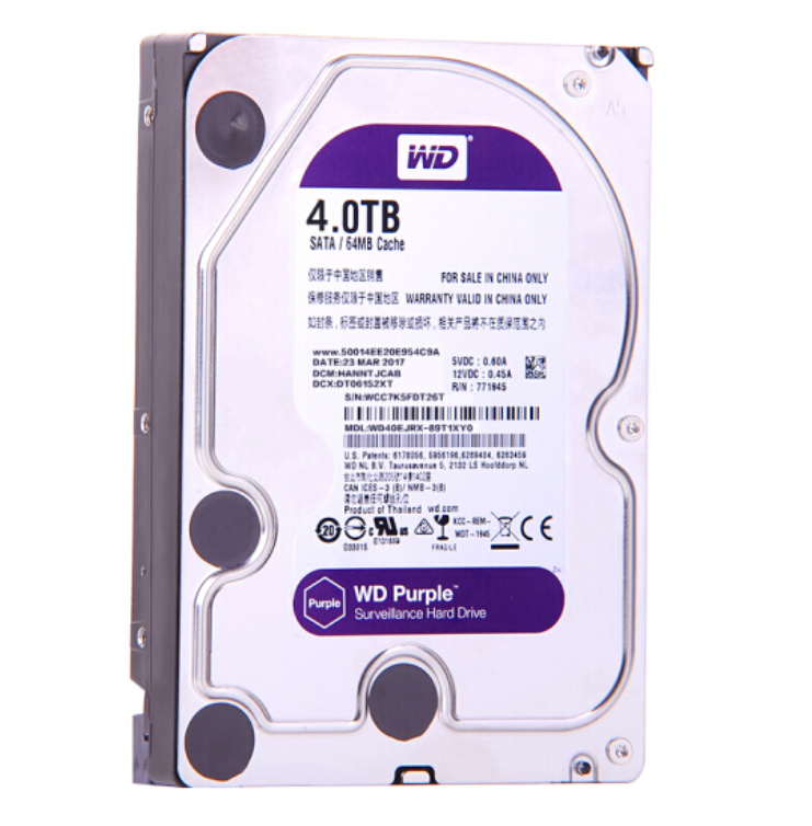 昆明电脑商城 西部数据(WD)紫盘 4TB SATA6Gb/s 64M 监控硬盘(WD40PURX)