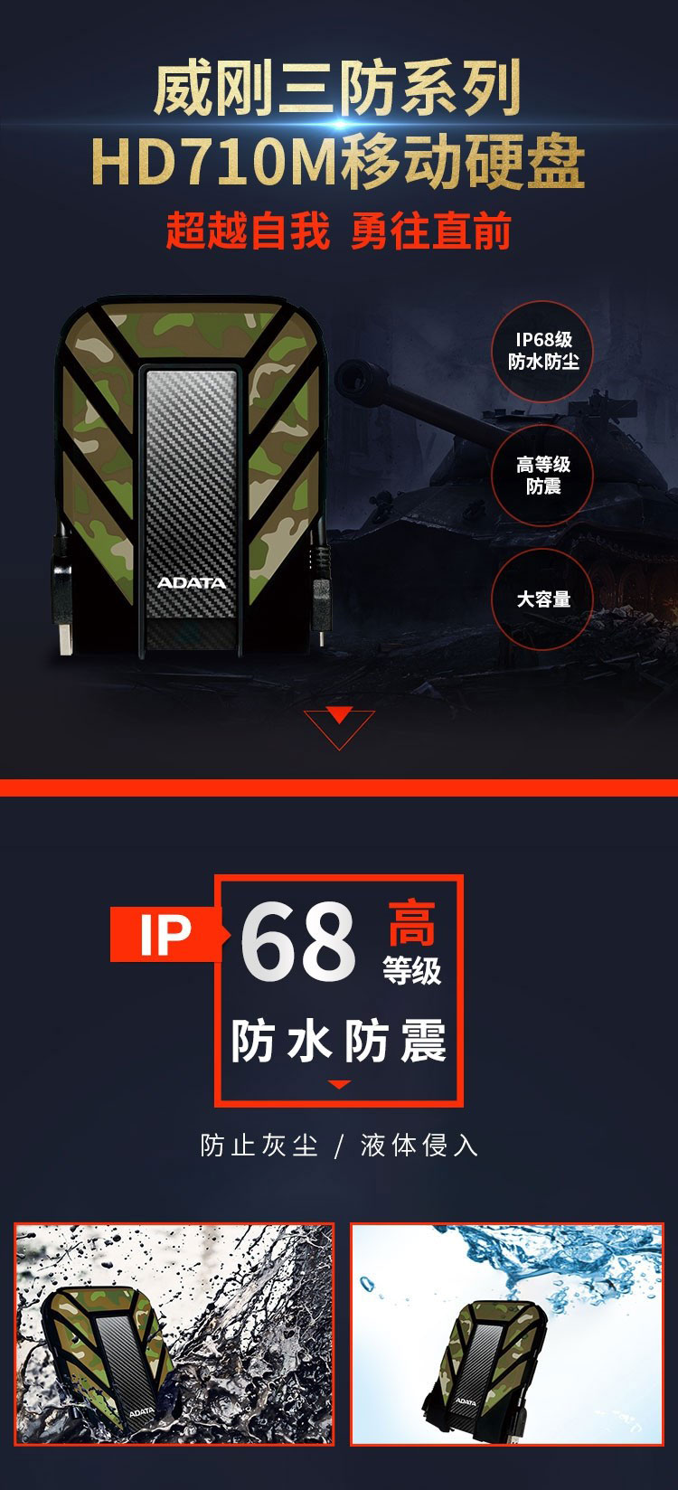 云南硬盘批发 威刚 ADATA HD7B IP68防水防尘 高等级防震 2.5英寸 USB3.010M 1T
