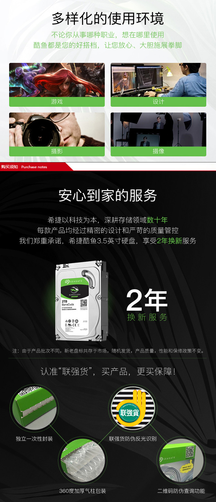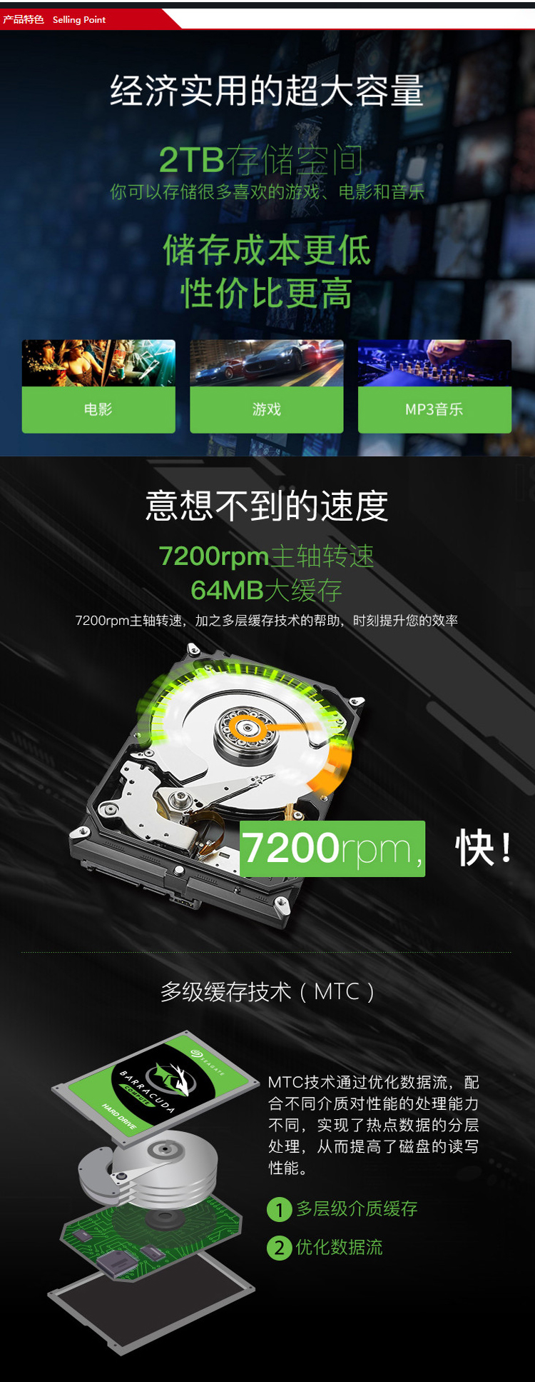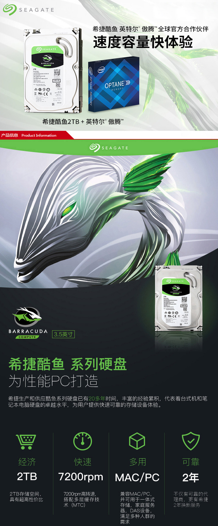云南硬盘批发 希捷(SEAGATE)酷鱼系列 2TB 7200转64M SATA3 台式机机械硬盘