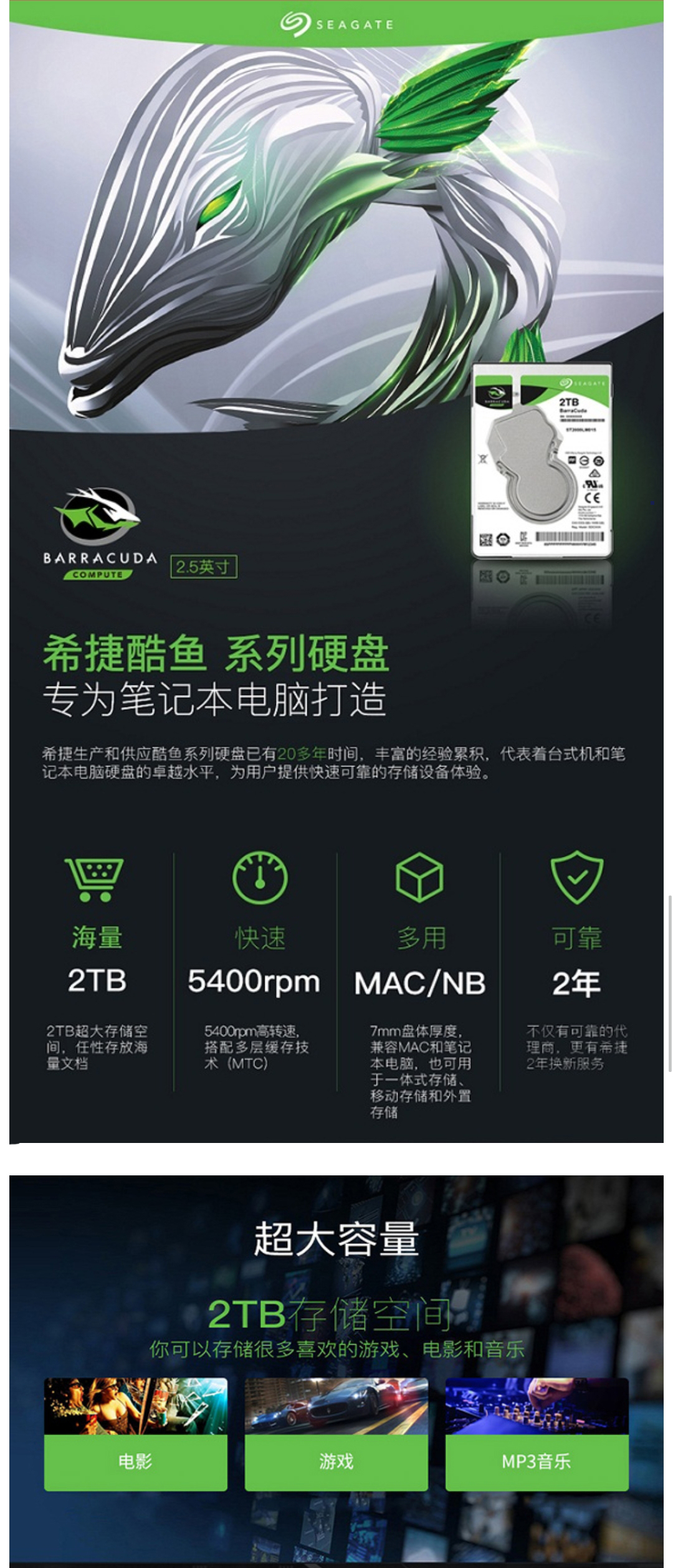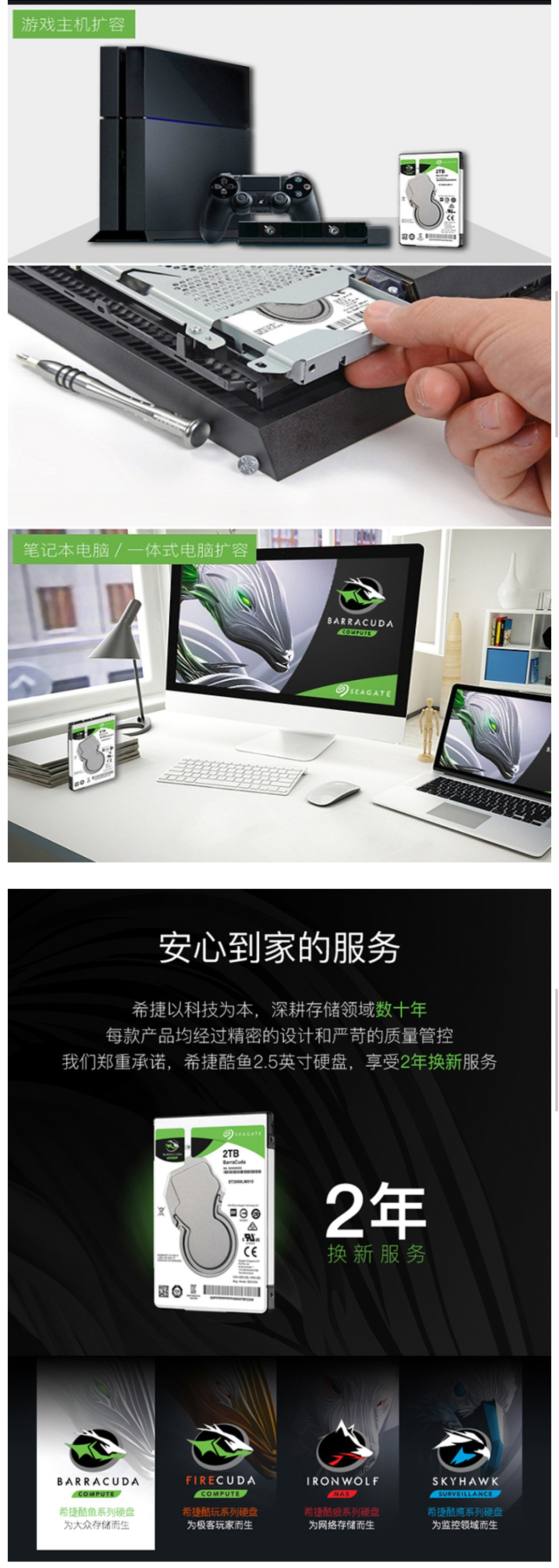 云南硬盘批发 希捷(SEAGATE)酷鱼2.5英寸 2T 5400转 128M SATA6 7mm 笔记本硬盘(ST2000LM015)