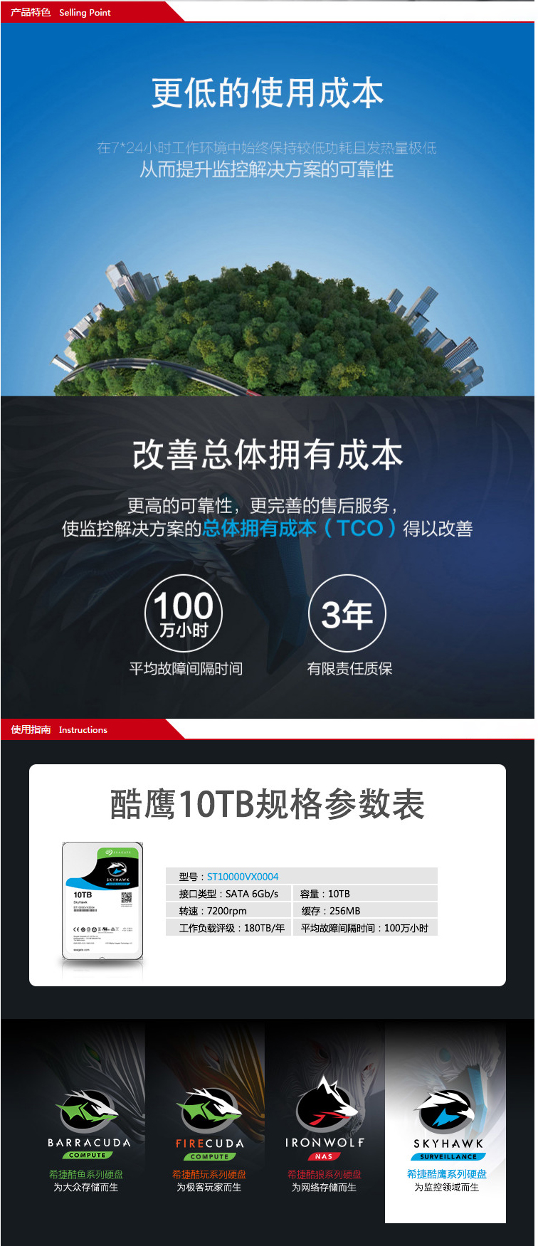 云南硬盘批发 希捷(SEAGATE)酷鹰系列 10TB 7200转256M SATA3 监控级硬盘