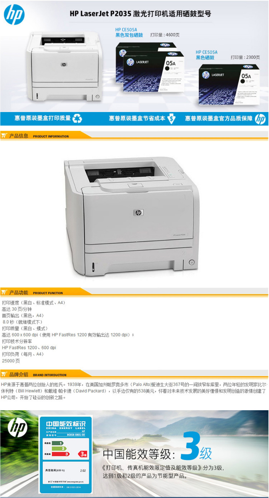 惠普(HP) 打印机 2035 A4黑白激光打印机