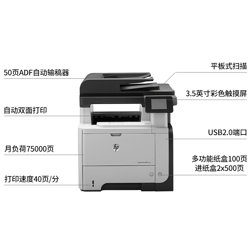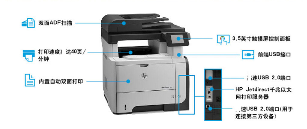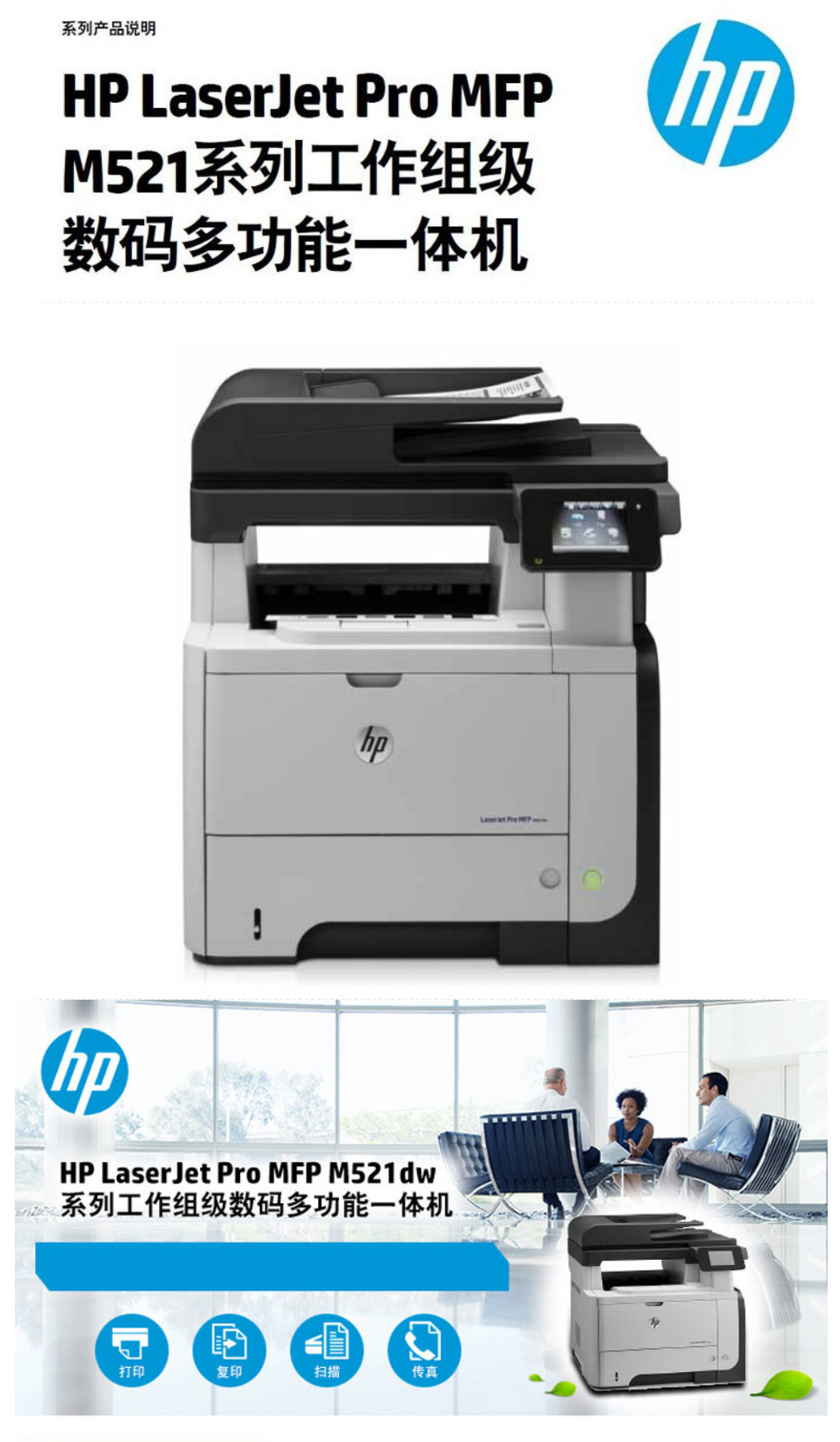 惠普HP A4数码黑白激光多功能打印机一体机 M521dn