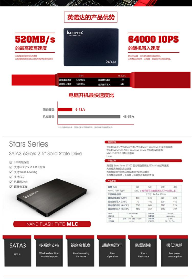 INNOPTEA英诺达ST500吃鸡利器 急速开机固态硬盘128/180/256/512/960