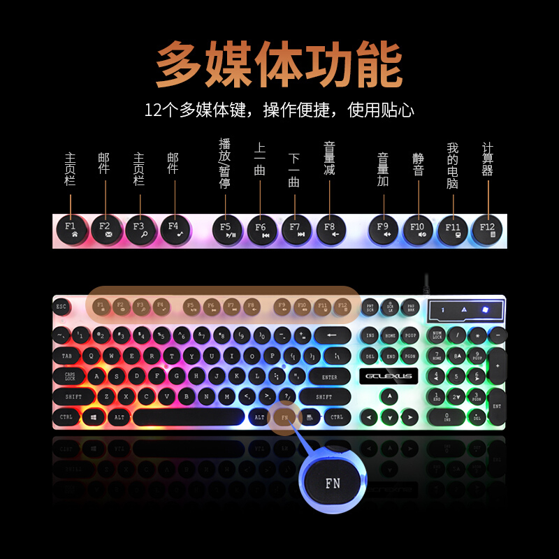 贵彩 GCLEXUS G210朋克版有线USB接口游戏键帽炫酷七彩有线键盘