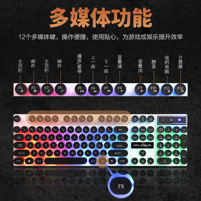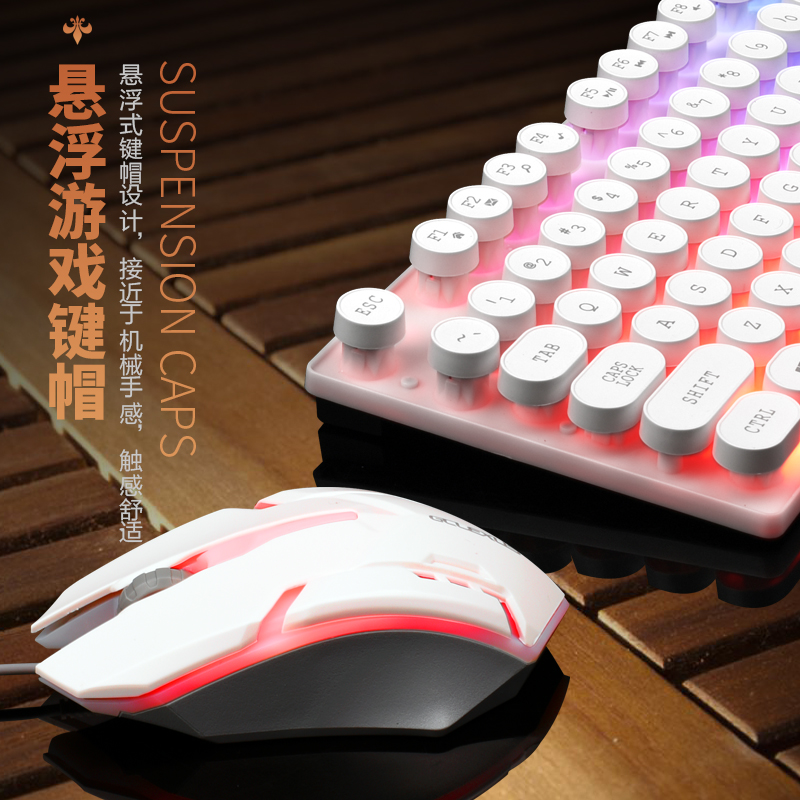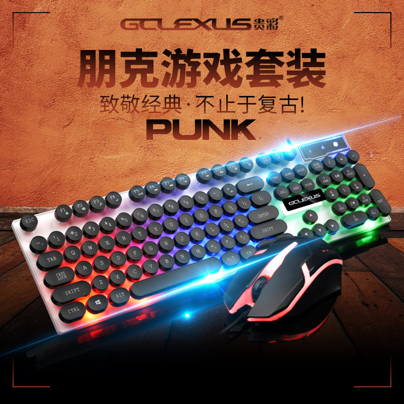 贵彩Q210复古朋克键鼠套装游戏悬浮机械手感七彩炫光USB键鼠套装