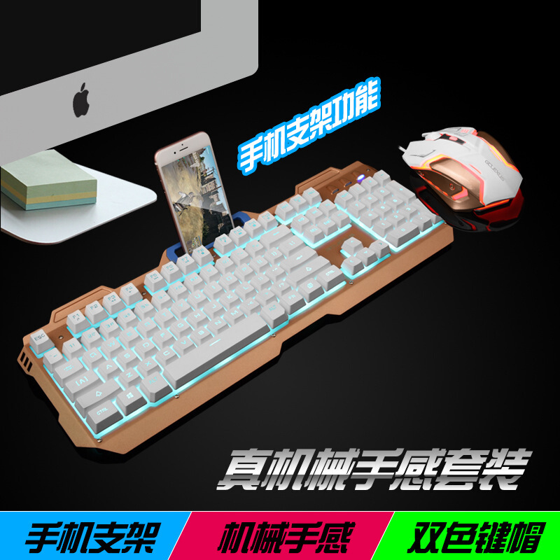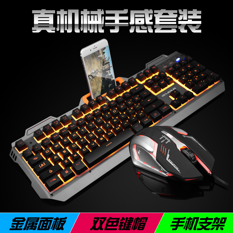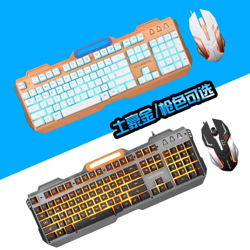 贵彩GCLEXUS Q350 机械手感键盘鼠标套装USB有线背光家用办公