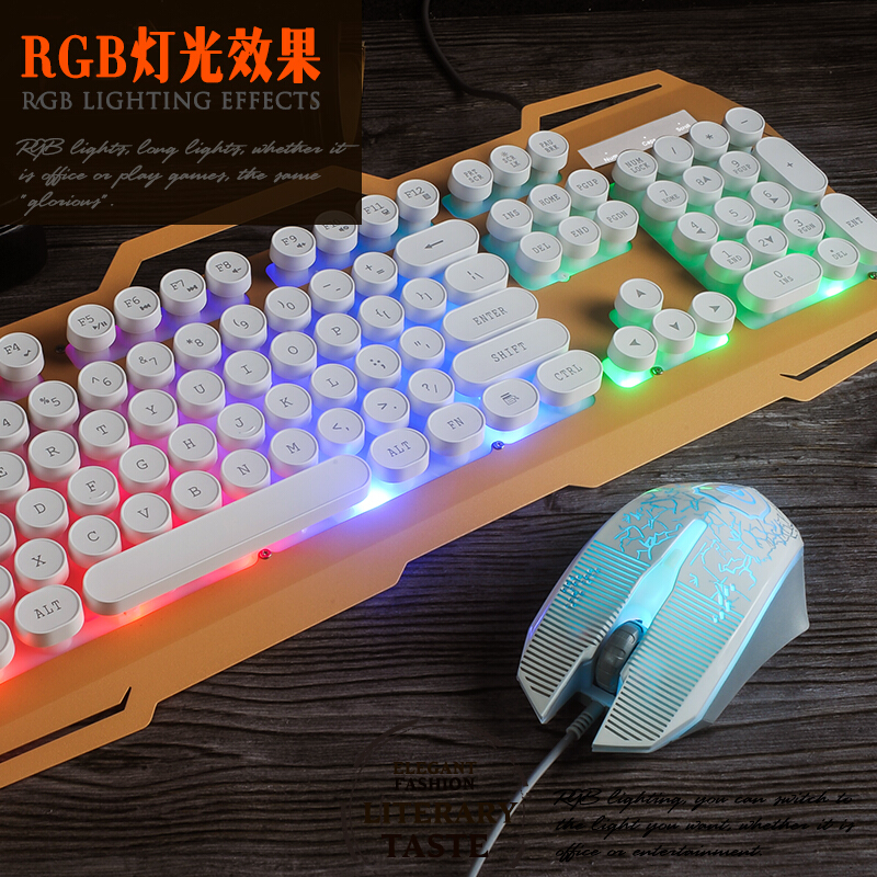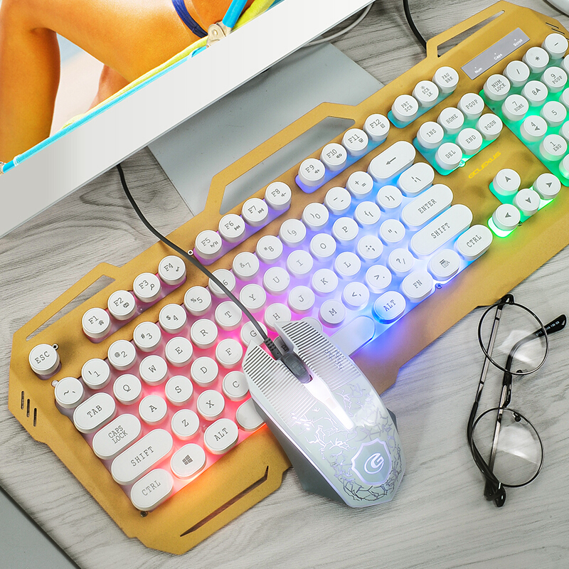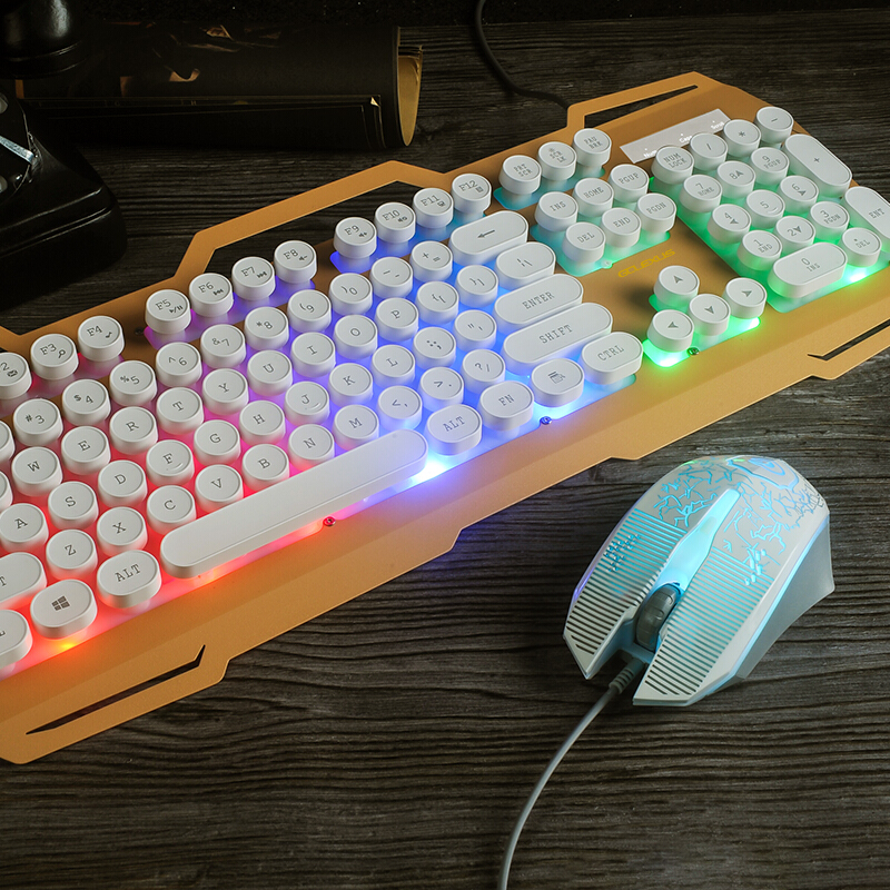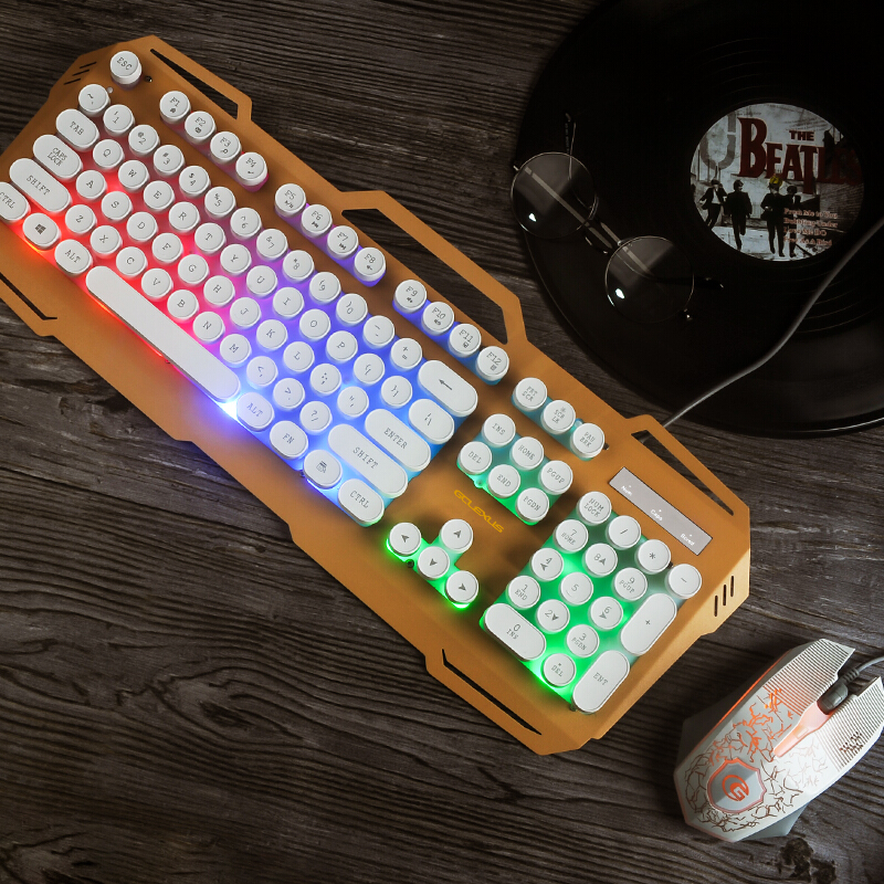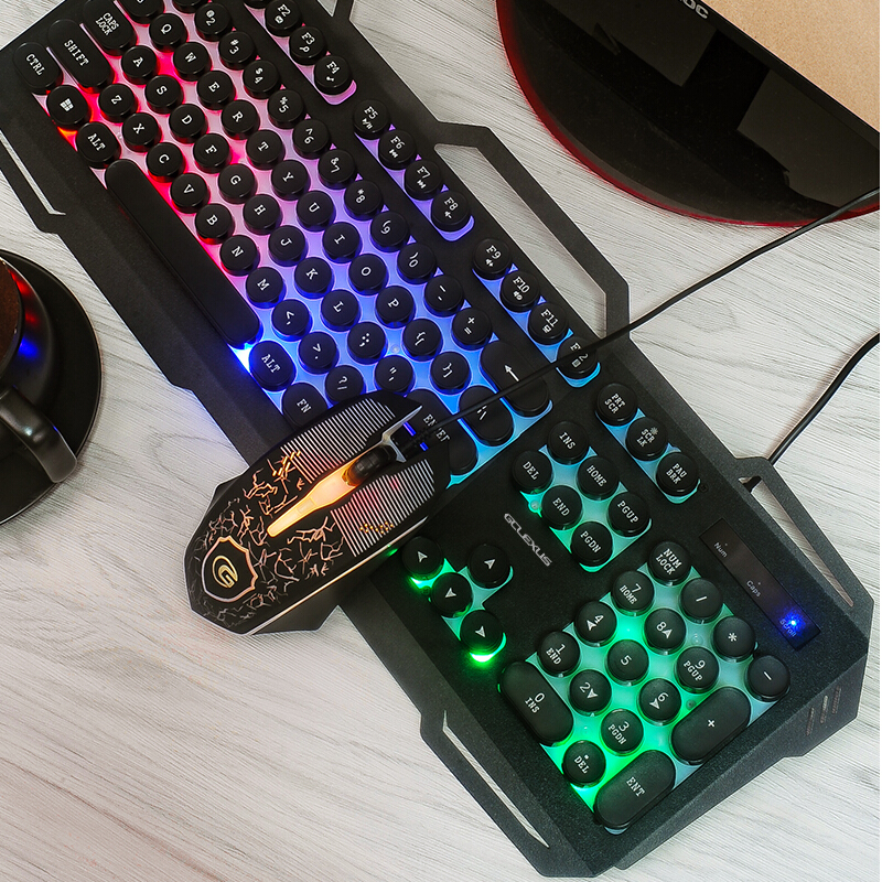 贵彩GCLEXUS Q360金属朋克键鼠套装游戏键盘鼠标有线金属悬浮背光