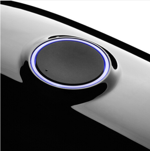 由前部延伸到控制旋钮的一条凸起筋线,不仅仅平衡左右视线,更给人以桀骜不驯的喷薄张力;旋控开关位于鲸鱼头的喷水孔处,恰如其分的比例和位置,使整体造型更加生动。