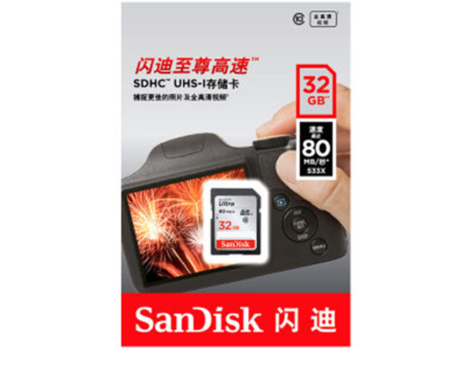 商品名称:闪迪(SanDisk) SD内存卡16G/32G/64G 高速单反相机卡 摄影机存储卡 4K高清拍摄 【SDUNC】80M/s 32G