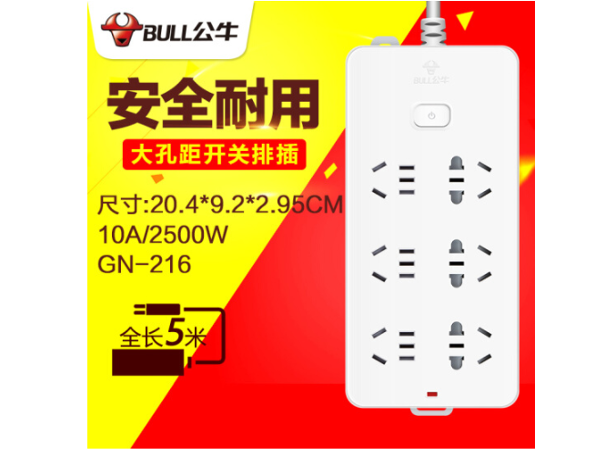 商品名称:Bull公牛正品插座超功率强化多功能智能多孔大插排带过载保护电源排插接线板插板插线板拖线板 5米6插位GN-216