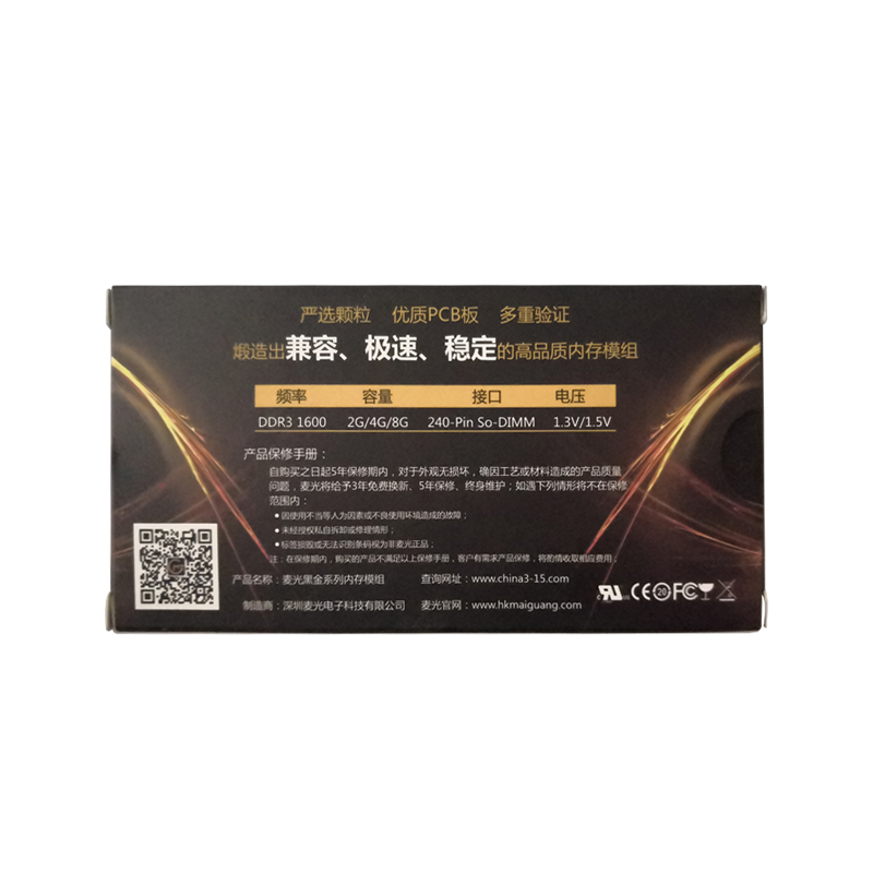麦光黑金MG 4G-DDR3 1600 笔记本 内存条