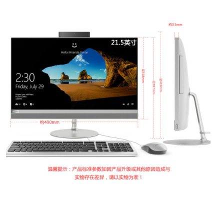 商品名称:联想(Lenovo) 一体机电脑AIO520-22台式电脑家用办公游戏娱乐 标配:G4900T 4G 1T核显21.5英寸银