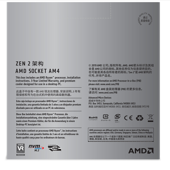 AMD 锐龙5 3600 处理器 (r5)7nm 6核12线程 3.6GHz 65W AM4接口 盒装CPU 云南电脑批发
