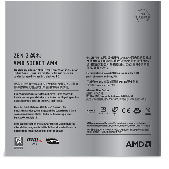 AMD 锐龙5 3600X 处理器 (r5)7nm 6核12线程 3.8GHz 95W AM4接口 盒装CPU 云南电脑批发