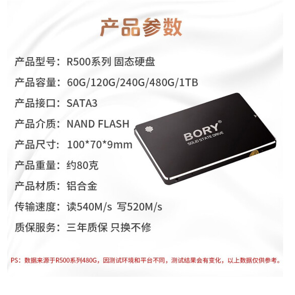 BORY博睿 240G SSD 固态硬盘 SATA3.0接口 R500系列 电脑升级高速读写版 云南电脑批发