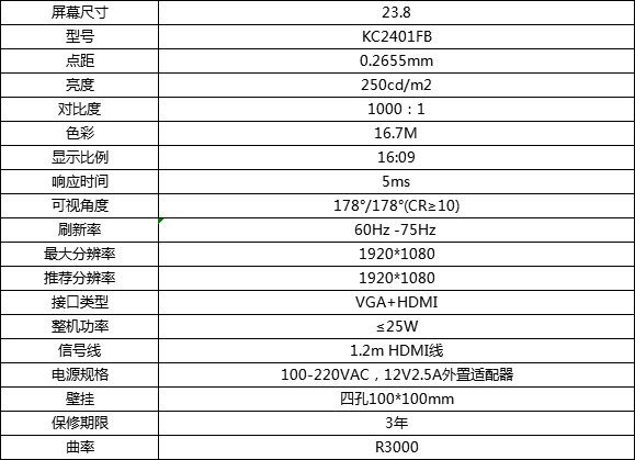 | 屏幕尺寸 | 23.8 | |||