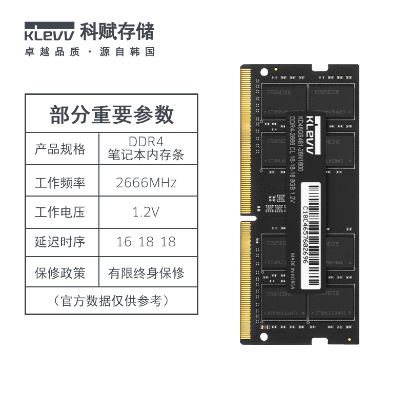 科赋(KLEVV) DDR4 8G 2666 笔记本内存条 云南电脑批发