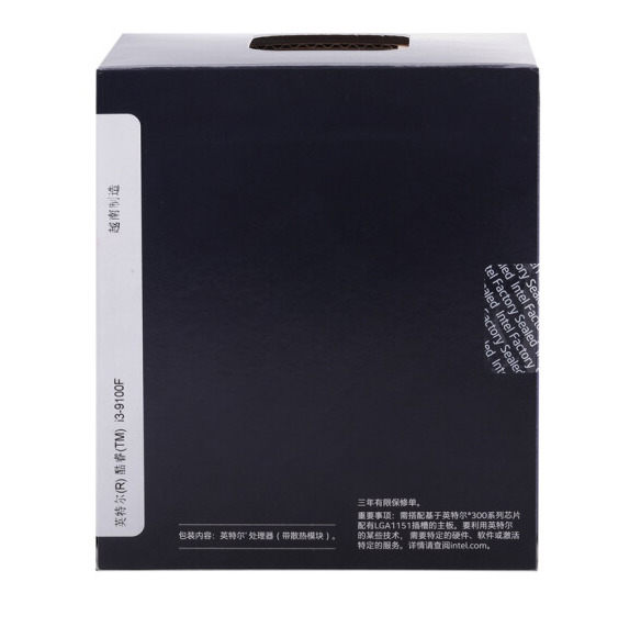 英特尔(Intel)i3 9100F 酷睿四核 盒装CPU处理器