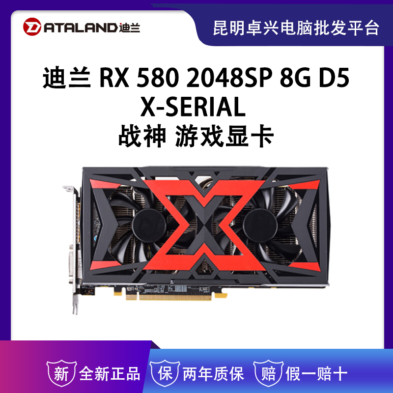 迪兰(Dataland)RX 580 2048SP 8G X-Serial 战神 1284-1320/8000MHz 8GB/256-bit GDDR5 DX12 游戏显卡 云南电脑批发