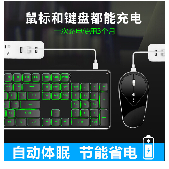 商品名称:蝰蛇(VIPERADE)可充电无线鼠标无声静音发光无限游戏锂电池2.4G电脑办公笔记本USB外接 WK500 黑色 可充电无线背光键盘鼠标套装