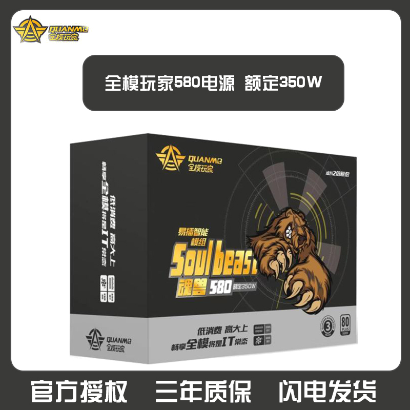 三段式 全模玩家580电源 额定350W 无声温控电源 云南电脑批发