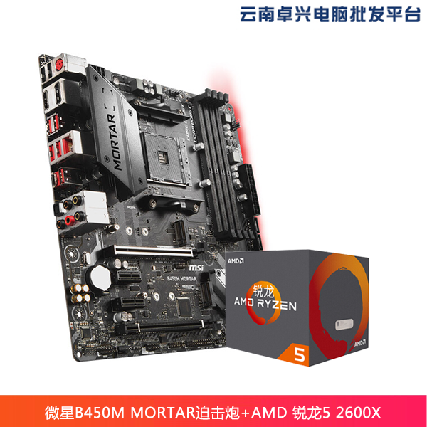 云南卓兴电脑:微星(MSI)B450M MORTAR迫击炮 电竞主板 +AMD 锐龙5 2600X 处理器 板U套装