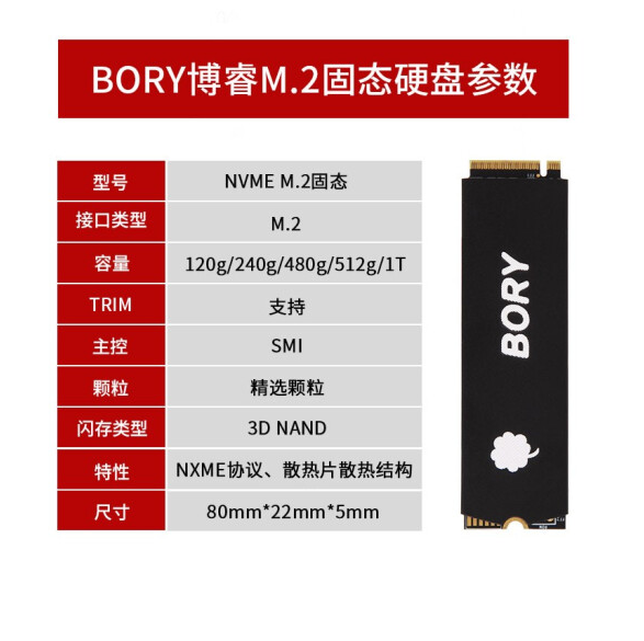 BORY博睿 256G 固态硬盘 nvme协议M.2接口 2280PCIe 台式机 笔记本 散热装甲性能强劲 云南电脑批发