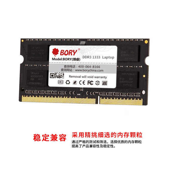 • 商品名称:BORY博睿 1.35V 低电压版 DDR3L 1600 4G 8G 笔记本内存 DDR3 1600 8G【笔记本内存】