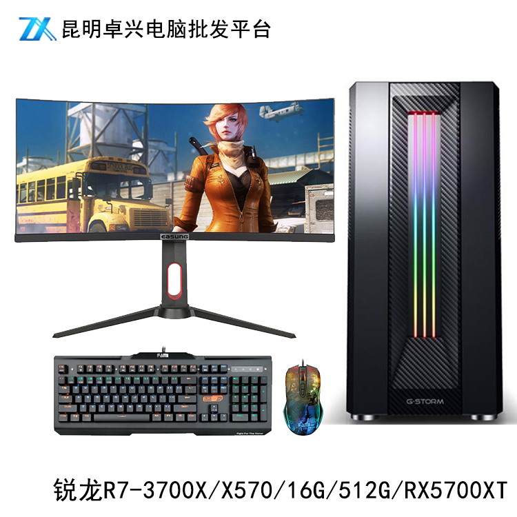 卓兴整机:AMD锐龙R7-3700X/X570/16G/512G/RX5700XT/30英寸200Hz电竞曲面游戏整机