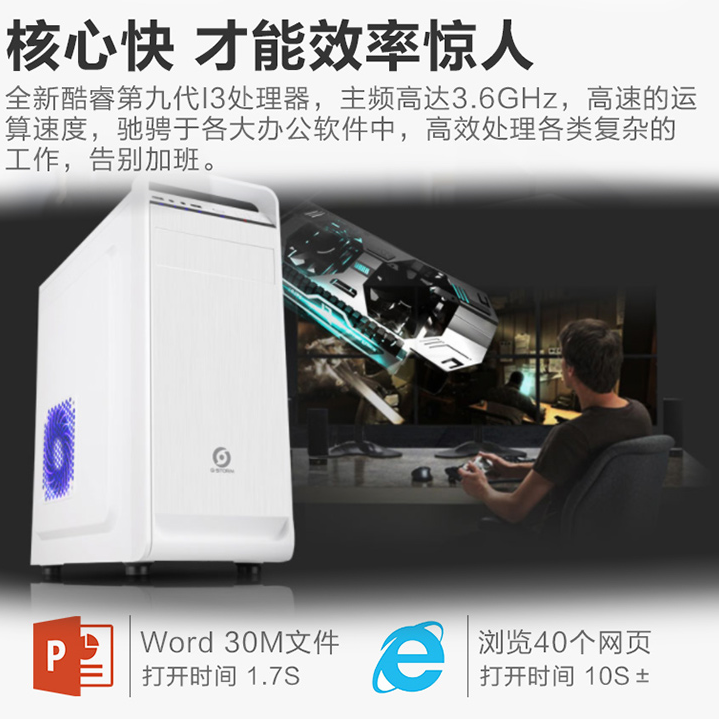 英特尔 酷睿九代i3 2G独显整机 小白清新套装i3-9100F 办公娱乐首选 无边框显示器