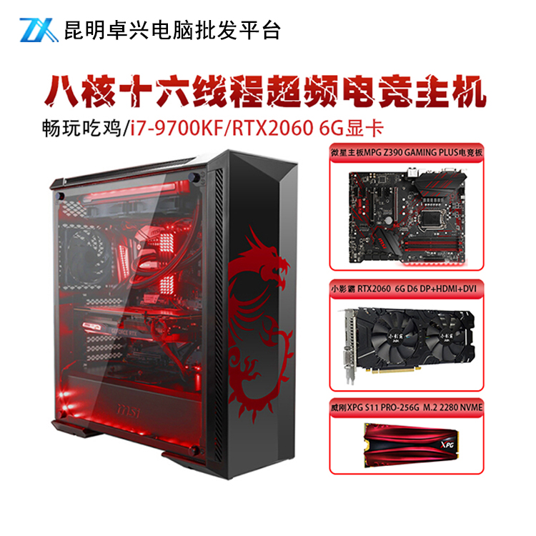 英特尔酷睿I7-9700KF搭微星主板Z390 2060微星信仰机箱电竞主机