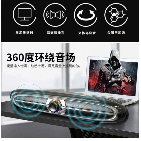 金河田(Golden field)M29青春版 音箱 回音壁式桌面电脑音响 电脑音响 笔记本低音炮 电视迷你音响