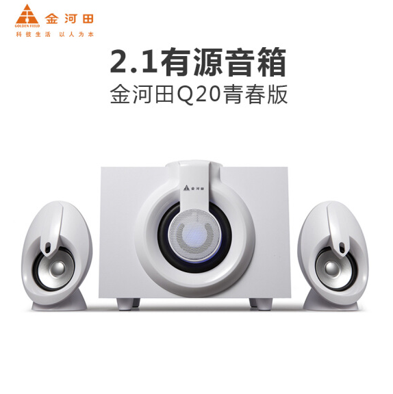 金河田(Golden field) Q20 电脑蓝牙音响 台式电脑音箱 通用音箱重低音炮 Q20 白色(青春版)