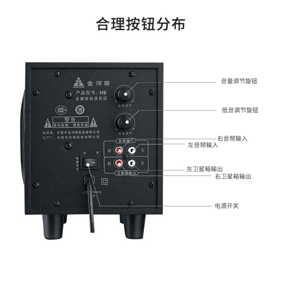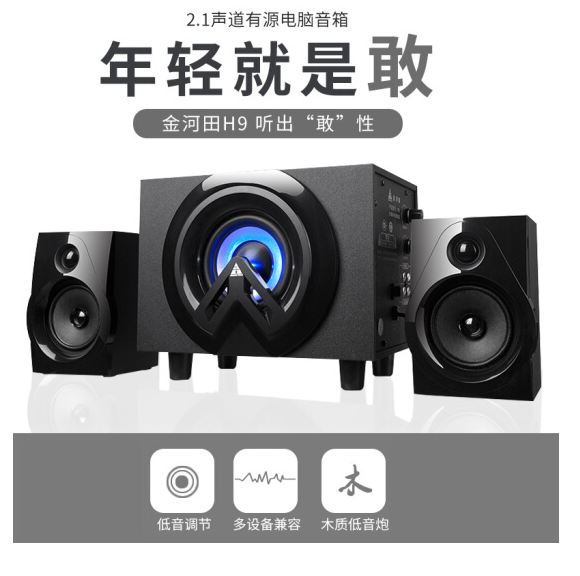 金河田(Golden field)H9 电脑多媒体音箱 有源音响 台式电脑音响 2.1低音炮音响 吃鸡游戏音响