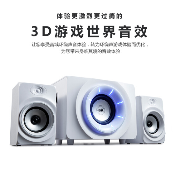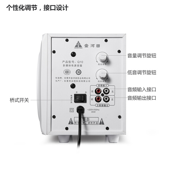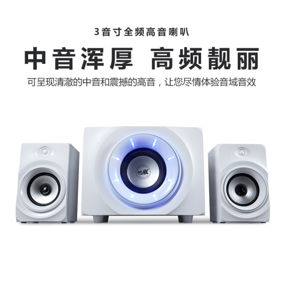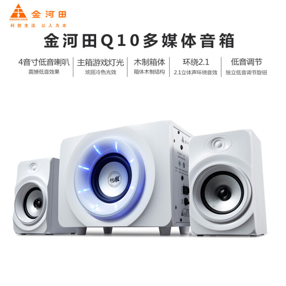 金河田(Golden field) Q10电脑音箱 台式机笔记本电脑游戏重低音音响 白色标准版