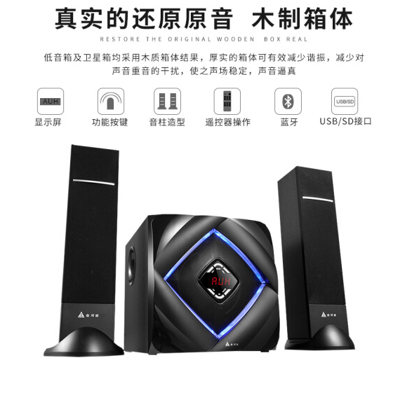 金河田(Golden field) F7台式电脑音响家用蓝牙低音炮笔记本音箱 黑色