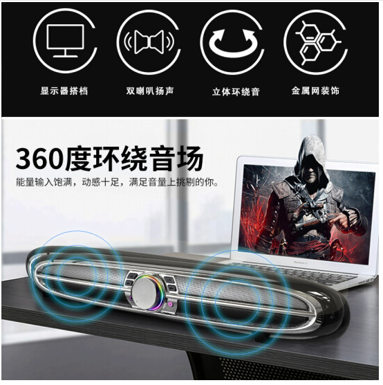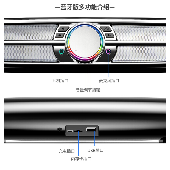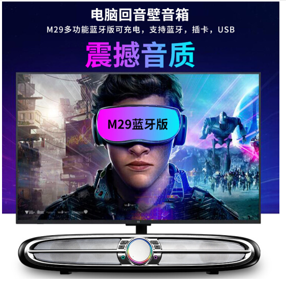 金河田(Golden field)M29蓝牙版 电脑音响 笔记本长条低音炮 手机多媒体蓝牙小音箱 内置电池 迷你回音壁