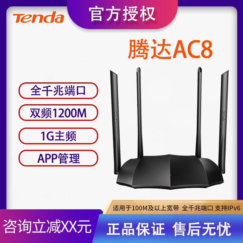 腾达(Tenda)AC8 双千兆路由器 1200M双频WiFi无线家用穿墙 5G双频智能无线路由(支持IPv6)