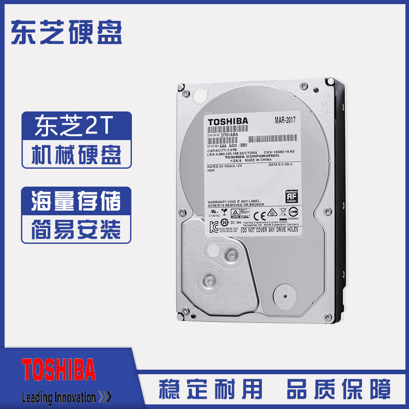 东芝(TOSHIBA) 2TB 32MB 5700RPM 监控硬盘 SATA接口 影音串流系列 (DT01ABA200V) 监视应用优化