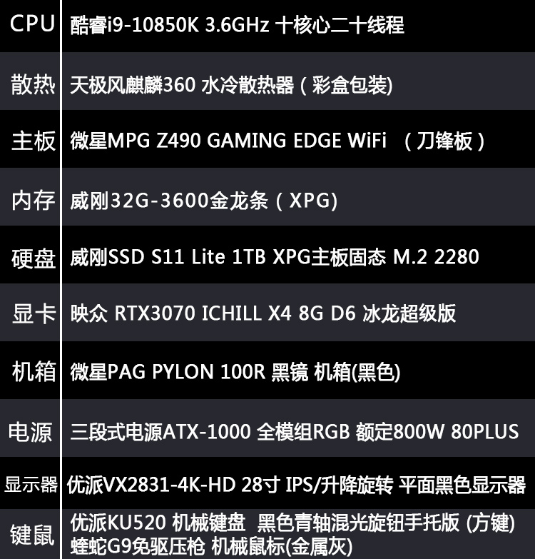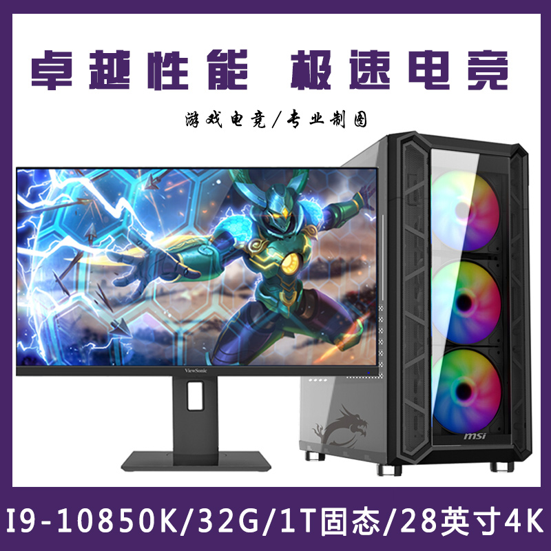 【i9-10850K整机】酷睿i9-10850F16G内存1T固态 28寸专业显示器游戏制图整机