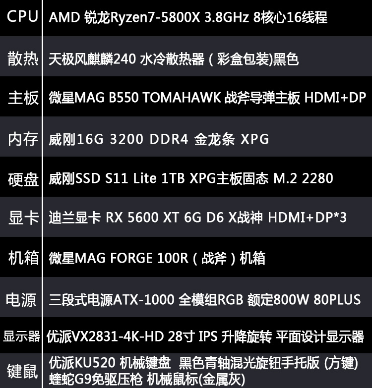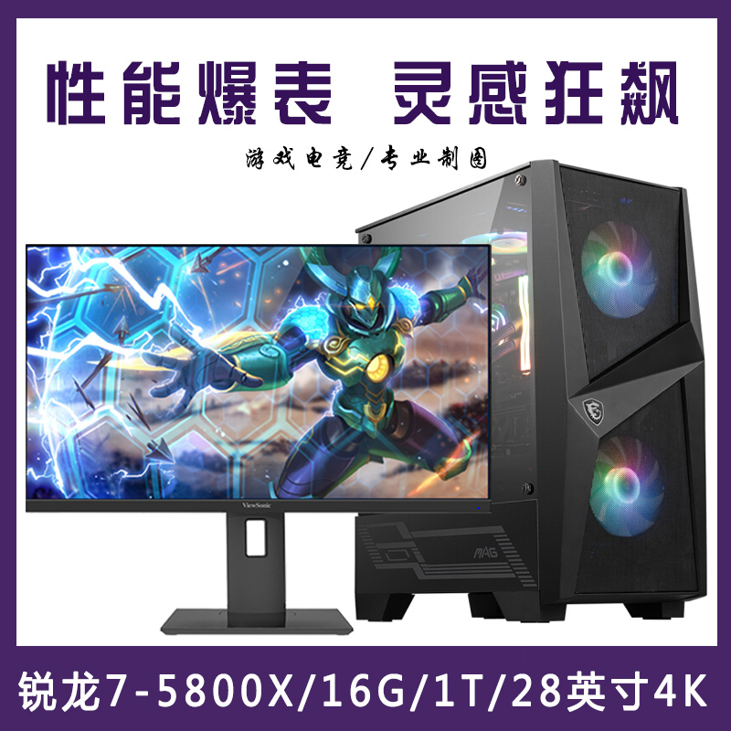 【 R7-5800X整机】AMD 锐龙R7-5800X /16G内存/1T固态/ 28寸4K专业显示器 游戏制图整机
